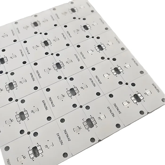 Para mantener un brillo uniforme en todo el panel LED, es necesario abordar principalmente factores eléctricos, térmicos y ópticos. En este panel LED PCB, utilizamos el sustrato de aluminio para evitar el sobrecalentamiento y optimizar el diseño del PCB con una distribución simétrica de la energía, trazas de baja resistencia y una conexión a tierra adecuada para garantizar un flujo de corriente uniforme.